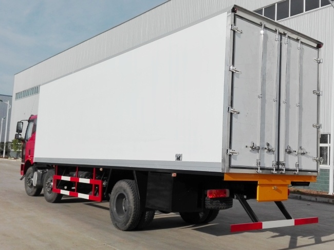 我公司《晶龍工藝》技術,采用1200噸液壓加熱固化設備一體成型生產線制造,廂體保溫技術達到國家A級標準。1、全密封樹脂膠粘連聚氨酯發泡板高壓加熱固化而成,廂板厚度為8cm;2、廂板內外面料為2.5mm厚新款玻璃鋼;3、粘連輔料為玻璃纖維絲布;4、板塊結構聚氨酯發泡保溫材料;5、全密封樹脂膠粘連;6、預埋實木廂體加固;7、廂體框架為防銹處理槽鋼支撐;8、鋁合金包邊/不銹鋼包角;9、廂體內部加裝LED照明燈;10、廂體加裝LED示寬燈;11、3.5米廂體以上加裝LED邊燈;12、廂體后門框為不銹鋼制造及不銹鋼鉸鏈(俗稱:不銹鋼合頁);13、加厚不銹鋼鎖件;14、后門加裝防撞膠塊;15、采用三元乙丙橡膠密封條;16、3M反光膠板。