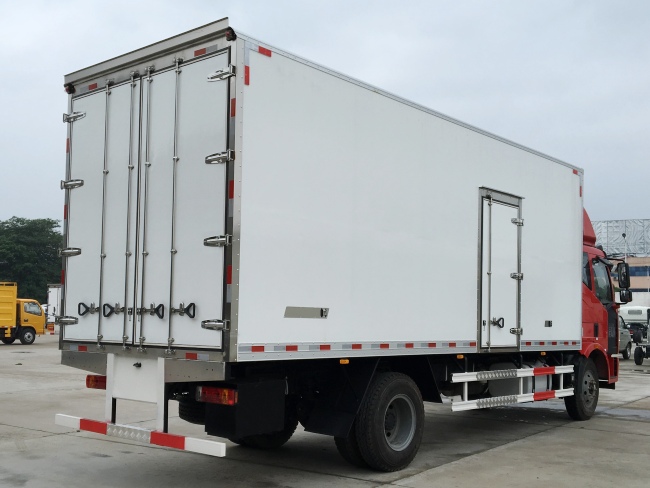我公司《晶龍工藝》技術,采用1200噸液壓加熱固化設備一體成型生產線制造,廂體保溫技術達到國家A級標準。1、全密封樹脂膠粘連聚氨酯發泡板高壓加熱固化而成,廂板厚度為8cm;2、廂板內外面料為2.5mm厚新款玻璃鋼;3、粘連輔料為玻璃纖維絲布;4、板塊結構聚氨酯發泡保溫材料;5、全密封樹脂膠粘連;6、預埋實木廂體加固;7、廂體框架為防銹處理槽鋼支撐;8、鋁合金包邊/不銹鋼包角;9、廂體內部加裝LED照明燈;10、廂體加裝LED示寬燈;11、3.5米廂體以上加裝LED邊燈;12、廂體后門框為不銹鋼制造及不銹鋼鉸鏈(俗稱:不銹鋼合頁);13、加厚不銹鋼鎖件;14、后門加裝防撞膠塊;15、采用三元乙丙橡膠密封條;16、3M反光膠板。